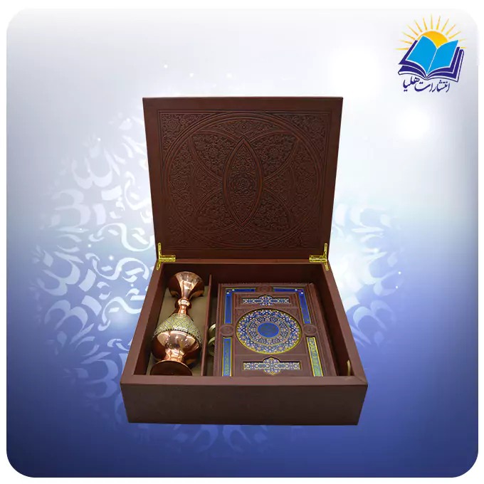این مجموعه فاخر، تلفیقی بی‌نظیر از کلام آسمانی و هنر دست ایرانی است که در قالبی شایسته و ماندگار ارائه می‌شود. قرآن کریم با قطع وزیری (۱۷×۲۵ سانتی‌متر)، نقطه‌ی کانونی این ست ارزشمند است که با دقت و ظرافت بی‌نظیری آماده شده است. متن قرآن با خط رایانه‌ای (رسم‌الخط عثمان طه) که به وضوح و خوانایی‌اش شهرت دارد، بر روی کاغذ عطری مرغوب چاپ شده است. از ویژگی‌های برجسته این مصحف شریف، چاپ پنج رنگ آن است که با استفاده از رنگ‌های متنوع و طرح‌های هنری نفیس، جلوه‌ای بی‌نظیر به صفحات بخشیده و تجربه بصری آیات را دلپذیرتر می‌سازد. این نسخه بدون ترجمه بوده و برای کسانی که به دنبال متن اصیل و خالص قرآن هستند، انتخابی ایده‌آل است. جلد کتاب نیز از بهترین چرم تهیه شده که علاوه بر استحکام، ظاهری بسیار فاخر و ماندگار به آن می‌بخشد. آنچه این مجموعه را از سایرین متمایز می‌کند، همراهی آن با یک اثر هنری بی‌بدیل است: گلدان مس و خاتم. این گلدان که از فلز مس مرغوب ساخته شده، با هنر اصیل و ظریف خاتم‌کاری مزین شده است. طرح‌های هندسی پیچیده و رنگارنگ خاتم، که حاصل کنار هم قرار دادن قطعات کوچک چوب، استخوان و فلز هستند، جلوه‌ای خیره‌کننده و اصیل به گلدان بخشیده و آن را به یک اثر هنری ارزشمند تبدیل کرده‌اند. این ست ارزشمند، انتخابی بی‌نظیر برای هدیه دادن در مناسبت‌های مذهبی، جشن‌های ازدواج، یا هر لحظه‌ای است که می‌خواهید ارزشی عمیق و هنری را به عزیزان خود هدیه دهید. این هدیه، یادبودی ماندگار از ایمان، هنر و سلیقه بی‌نظیر شماست.