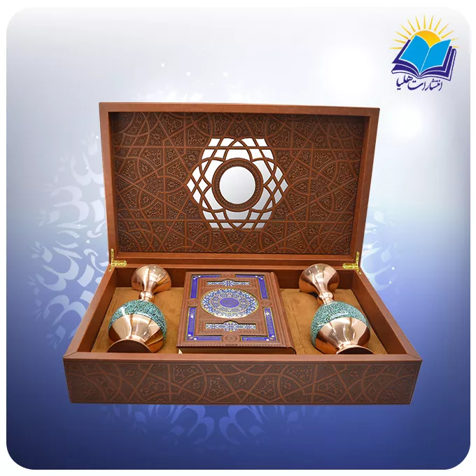 کتاب شریف قرآن در قطع وزیری، با خط دلنشین استاد عثمان طه و چاپ چهار رنگ بر روی کاغذ گلاسه، تجربهای بصری و معنوی فراموشنشدنی را ارائه میدهد. جزئیات بینظیر صفحات ۶۰۹ گانه، هر آیه را با وضوح و زیبایی خیرهکنندهای پیش چشم خواننده قرار میدهد. قاب لبتاپی لوکس این مجموعه، علاوه بر حفاظت از کتاب و گلدانها، جلوهای فاخر به آن میبخشد. دو گلدان فیروزه ۲۵ سانتیمتری، که نمادی از ثروتهای طبیعی و هنر دستی ایران هستند، با رنگ آبی آسمانی و نقش و نگارهای سنتی، هماهنگی بیبدیلی با کلامالله ایجاد کرده و جلوهای روحانی و درخشان به این مجموعه میبخشند.
